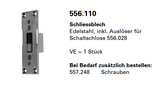 Jansen-Economy 60 RC Türen Schliessblech Edelstahl, inkl. Auslöser für Schaltschloss 556.028, Artikelnummer 556.110