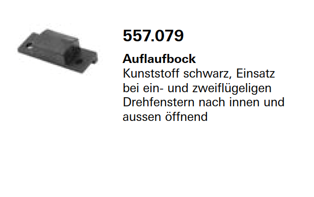 Jansen Janisol Arte 2.0, Auflaufbock Kunststoff schwarz, Einsatz bei ein- und zweiflügeligen Drehfenstern, Artikel Nr. 557.079