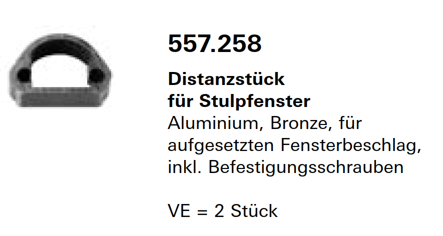 Jansen Janisol Arte 2.0 Distanzstück für Stulpfenster, Aluminium Bronze, für aufgesetzten Fensterbeschlag, Artikel Nr.557.258