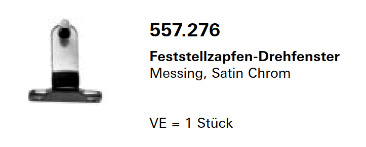 Jansen Janisol Arte 2.0 Feststellzapfen-Drehfenster, Messing, Satin Chrom, für aufgesetzten Fensterbeschlag, Artikel Nr.557.276