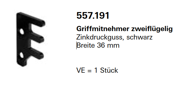 Jansen Janisol Arte 2.0, Griffmitnehmer zweiflügelig, Zinkdruckguss, schwarz, Breite 36 mm, Artikel Nr.557.191