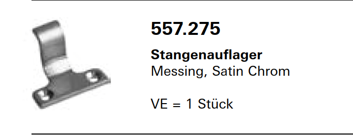 Jansen Janisol Arte 2.0 Stangenauflager, Messing, Satin Chrom, für aufgesetzten Fensterbeschlag, Artikel Nr.557.275