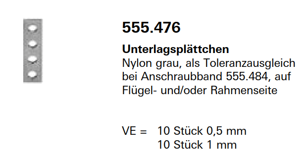 Jansen Janisol Arte 2.0, Unterlagsplättchen Nylon grau, als Toleranzausgleich, Artikel Nr. 555.476