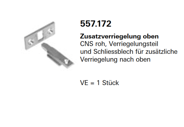 Jansen Janisol Arte 2.0, Zusatzverriegelung oben CNS roh, Verriegelungsteil und Schliessblech für zusätzliche, Artikel Nr. 557.172