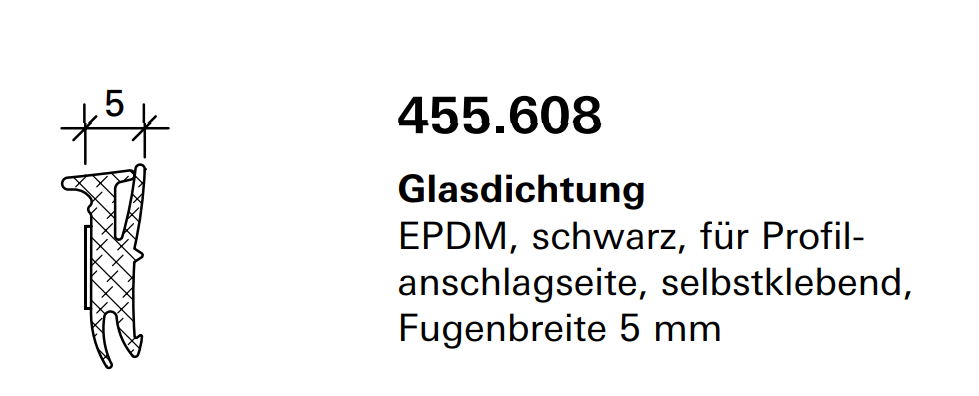 Jansen, Janisol Arte 66, Glasdichtung EPDM, schwarz, für Profilanschlagseite, selbstklebend, Fugenbreite 5 mm, 455.608