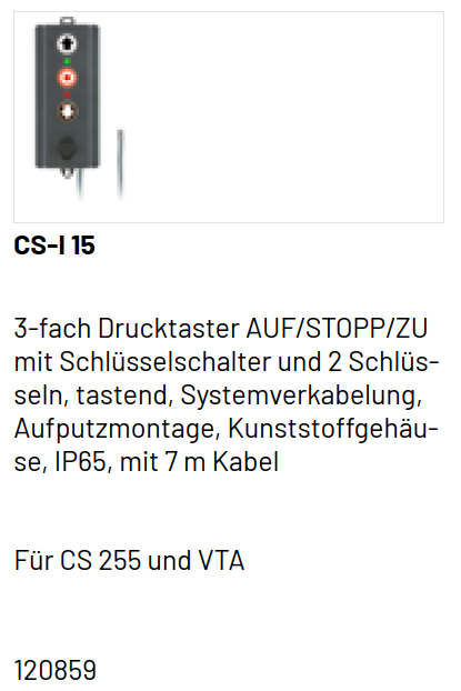 Marantec 3-fach Drucktaster, CS-I 15, AUF/STOPP/ZU mit Schlüsselschalter