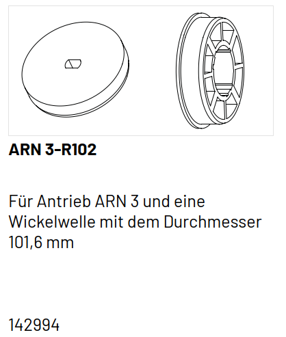 Marantec Adapter ARN 3-R102 (runde Wickelwelle,101,6mm) für Rohrmotorantriebe sind Einsteckantriebe für Rollgitter und Rolltore