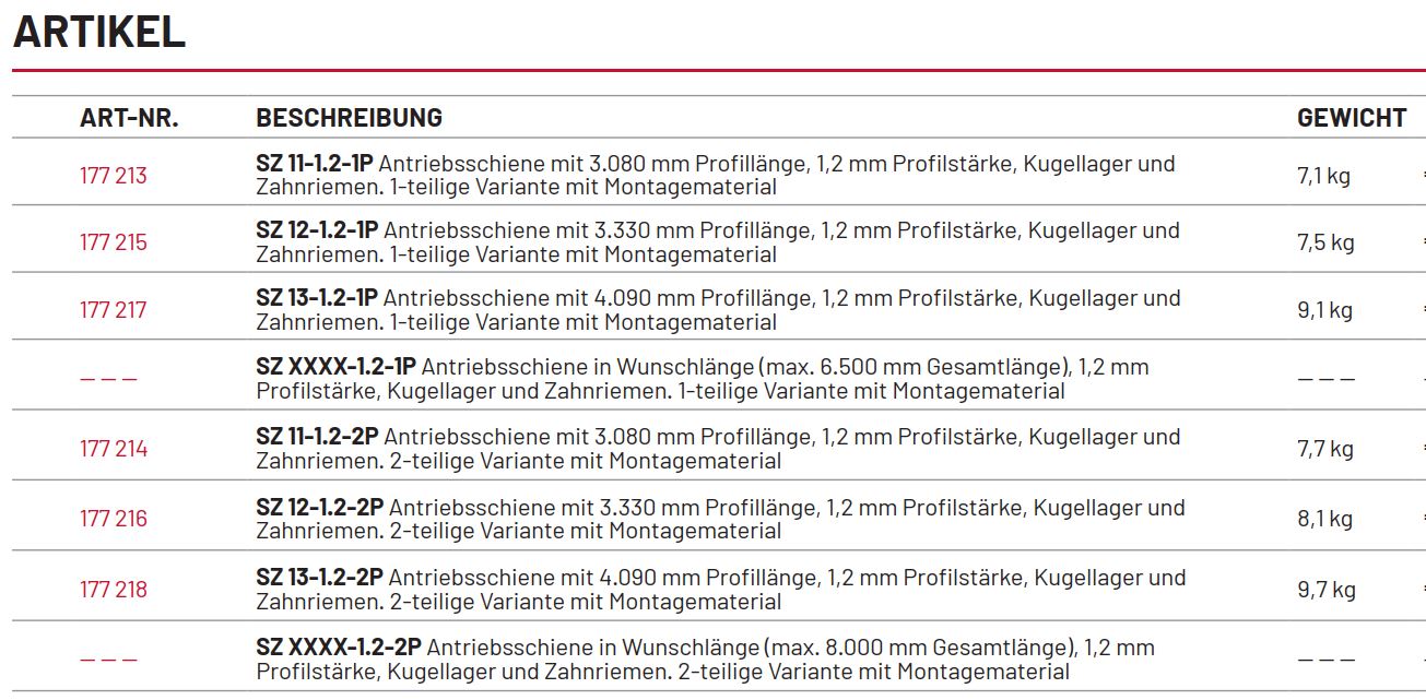 Marantec Antriebsschiene, SZ 11, 1-teilig, 1,2 mm Zahnriemen