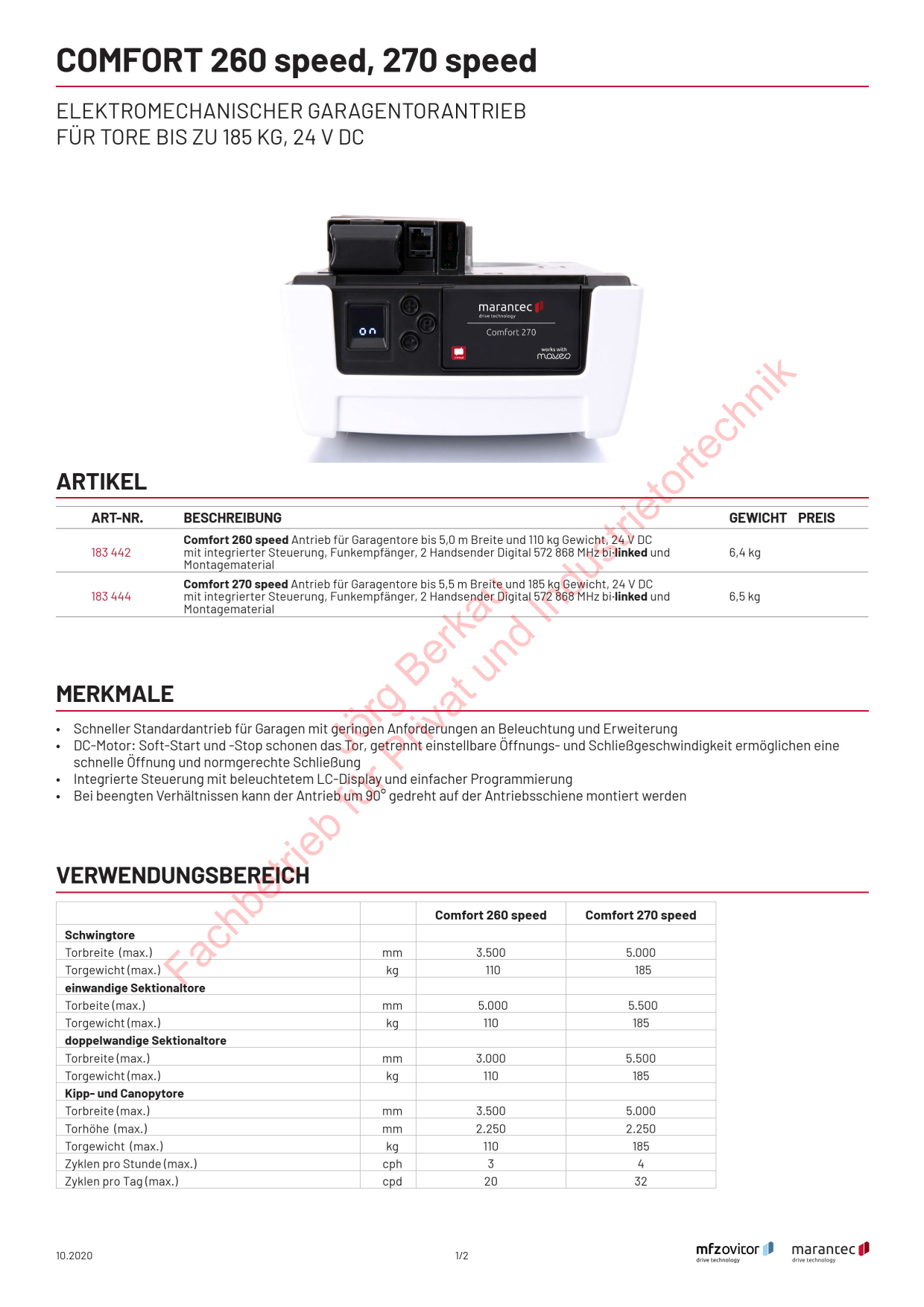 Marantec Comfort 260 speed, 650 N, Garagentorantrieb, 183442, bi∙linked