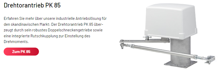 oder über unsere Drehtorantriebe den Comfort ST 500 sowie unseren Drehrorantrieb PK 85