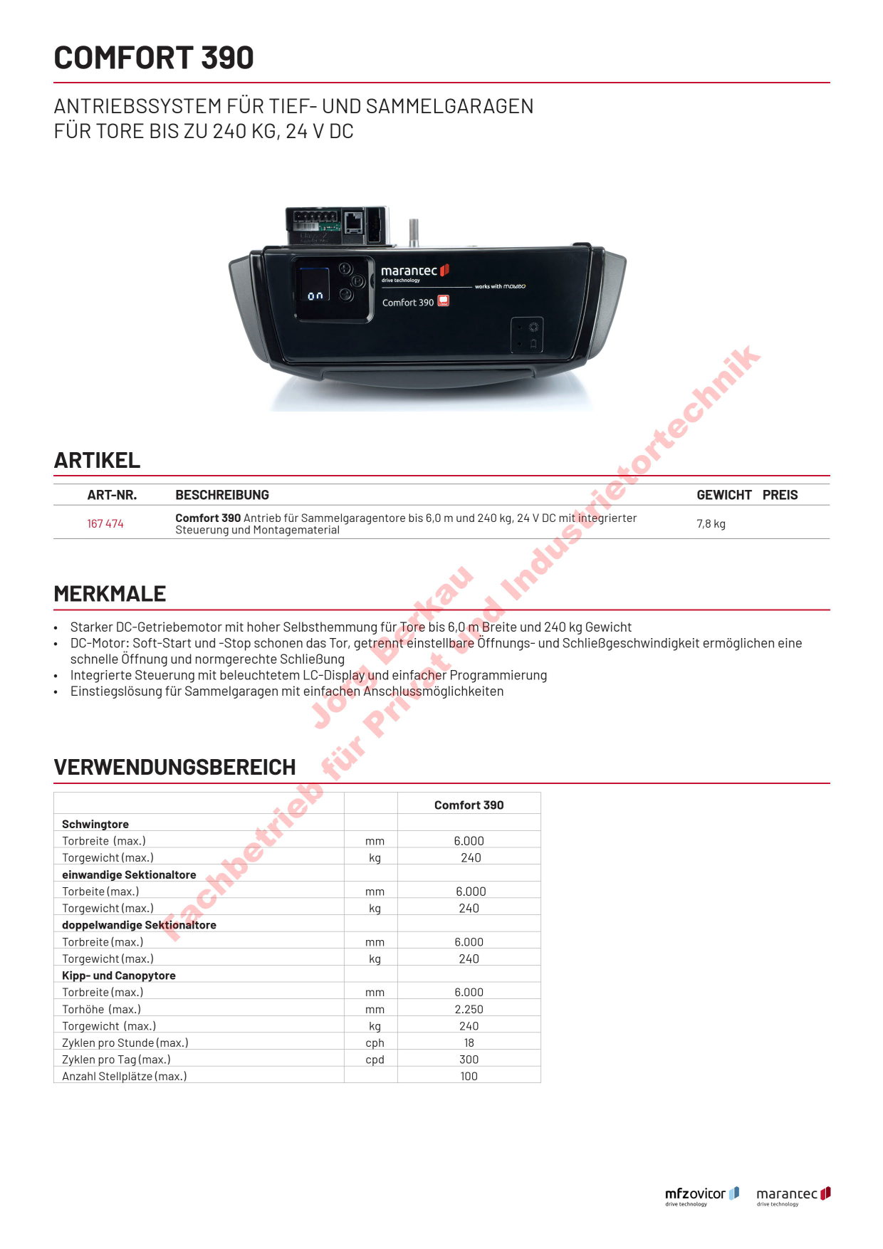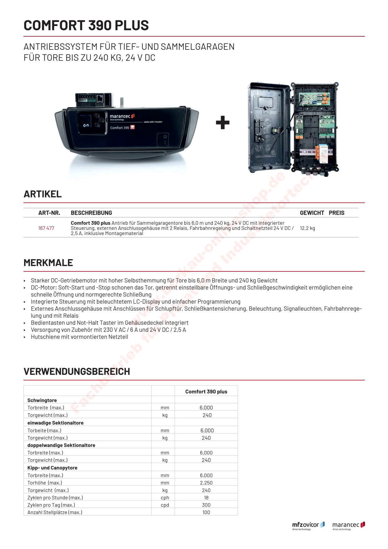 Der Tiefgaragentorantriebe Comfort 390- und Comfort 390 Plus
