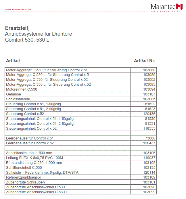 Marantec lieferbare Ersatzteil:
