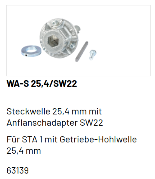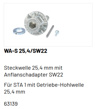 Marantec Steckwelle 25,4 mm mit Adapter für Federwelle mit 6- Kant 22 SW