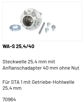 Marantec Steckwelle 25,4 mm mit Adapter für Federwelle ohne Nut 40 mm
