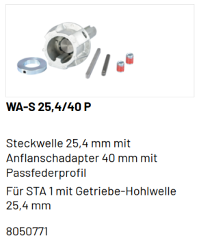 Marantec Steckwelle 25,4 mm, mit Anflanschadapter 40 mm, Passfederprofil