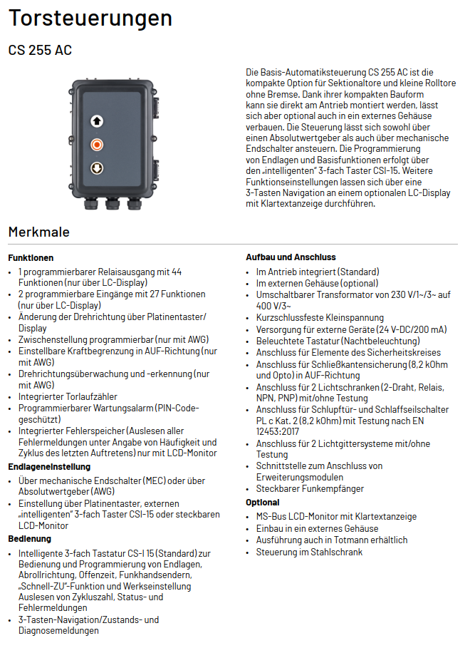Marantec, CS 255 AC, Steuerung, 230V-1PH