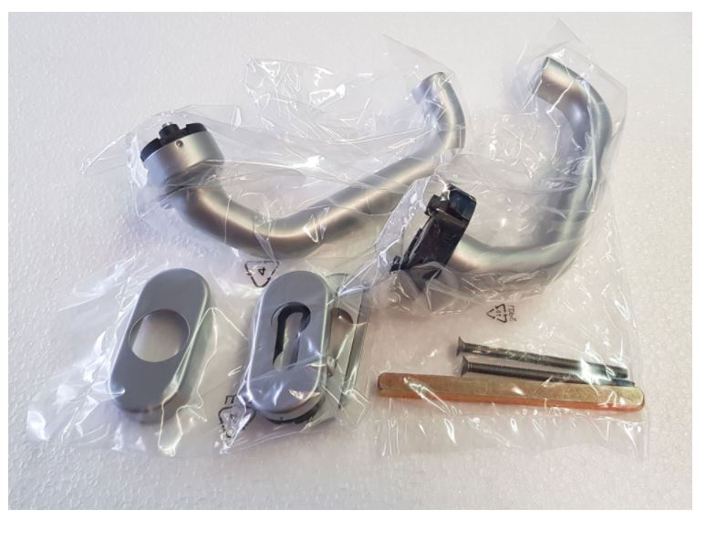 Normstahl Drückergarnitur Silber für Garagentüren Alu-Rahmen-Tür 52 mm