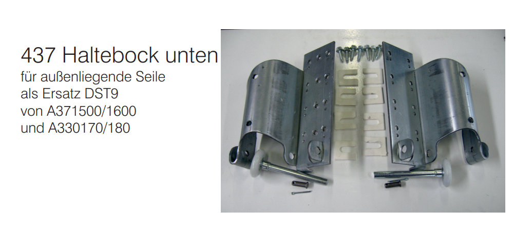 Normstahl Haltebock, unten für außen laufendes Seil, SET 437