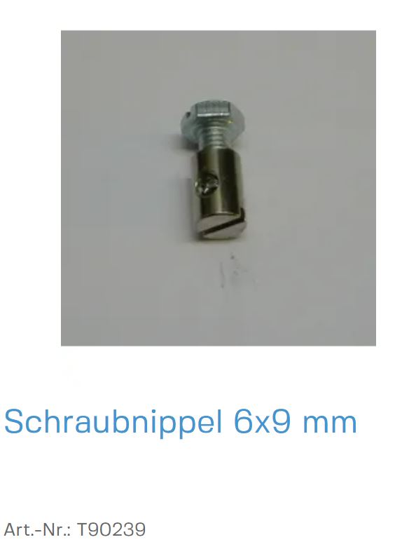 Normstahl Schraubnippel 6x9 mm zur Fixierung des Notentriegelungsseils