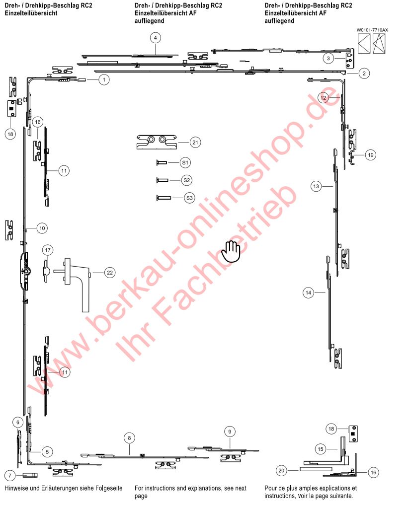 rp fineline 70W Fenster, Umlenkung für Dreh- / Drehkipp-Beschlag RC2 Euronut, Artikel Nummer: TEUL5050 Pos.5