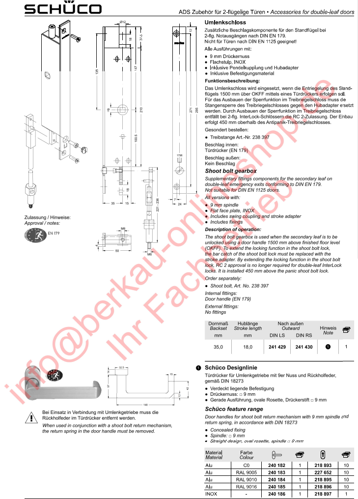 Schüco ADS Antipanik, Zubehör und Schliesstechnik für Notausgänge, Fluchttüren, PDFs