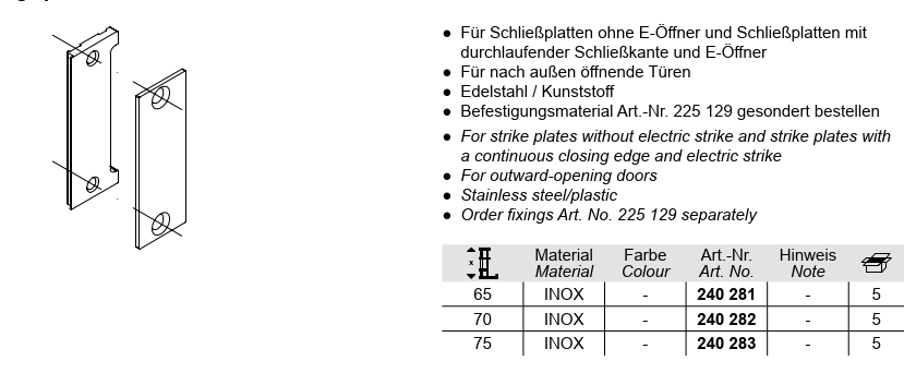 Schüco ADS Falleneinlaufteil mit Profil-Kantenschutz, 240282, für Schließplatten ohne E-Öffner