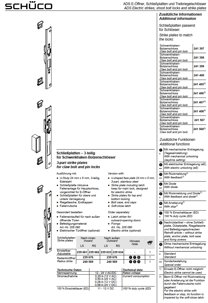 Schüco ADS Schließplatten–3-teilig für Schwenkhaken-Bolzenschlösser, 239661, LS nach innen, einstellbar