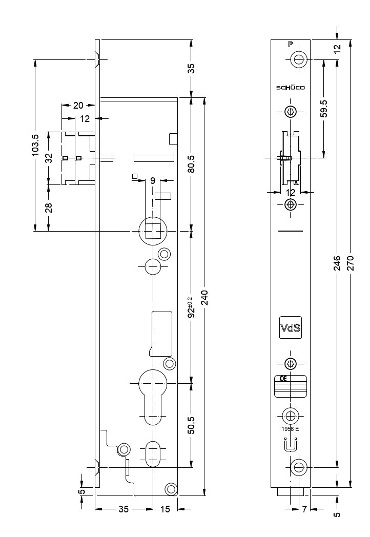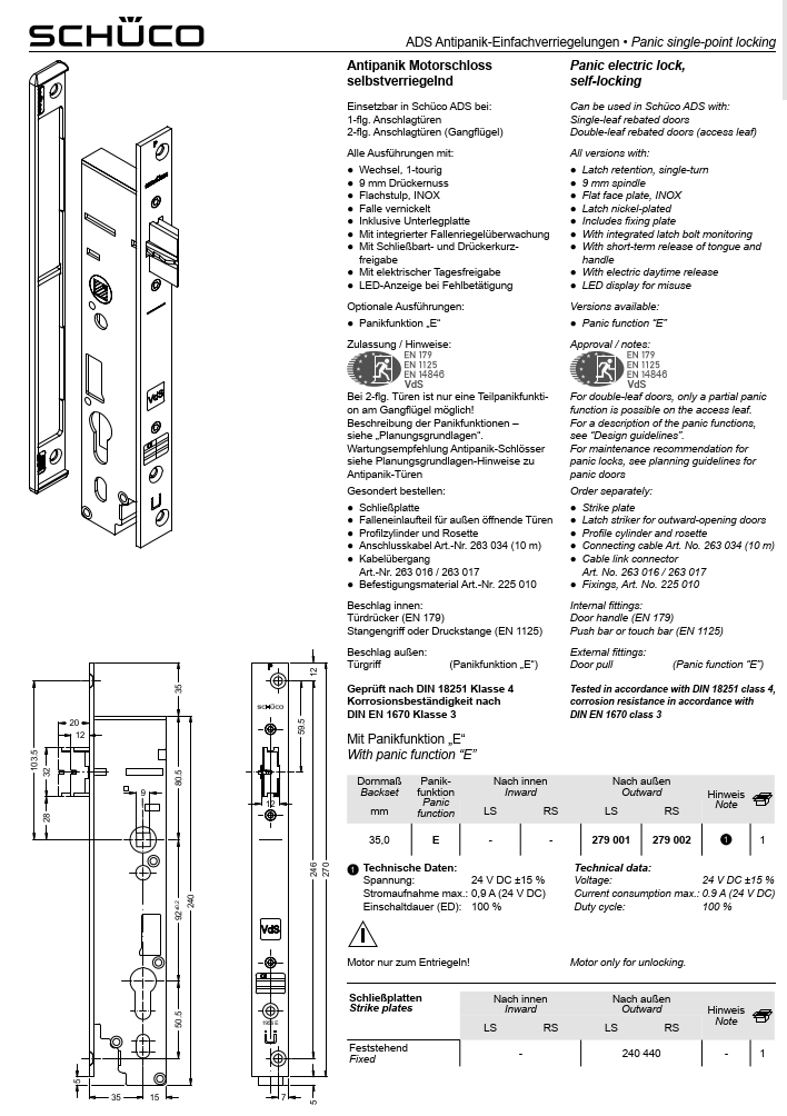 Schüco Antipanik Motorschloss selbstverriegelnd, 279 002, ADS nach außen RS, mit Panikfunktion E