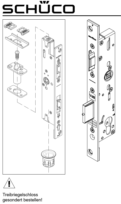 Schüco Antipanik Riegel-Fallenschloss, 241 971, ADS nach außen LS, mit Panikfunktion B