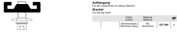 Schüco Aufhängung für die Laufschiene im oberen Bereicht, ASS 50 FD.NI, Artikelnummer 227 054, 227054, Aluminium