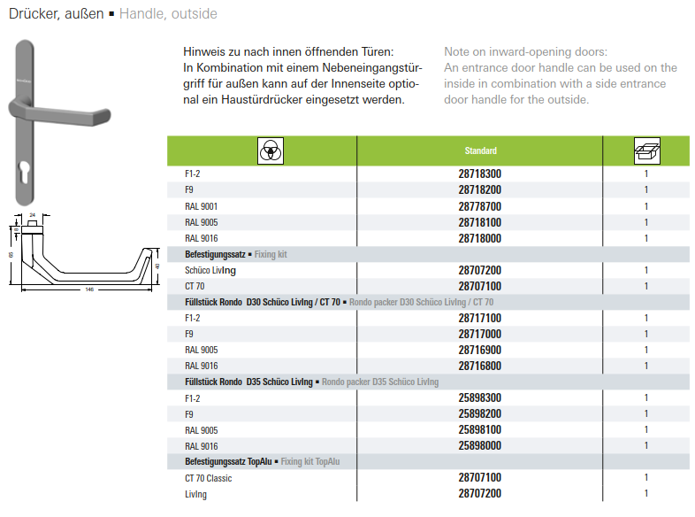 Schüco Befestigungssatz, 28707200, Schüco LivIng, TopAlu, Nebeneingangstürgriffe