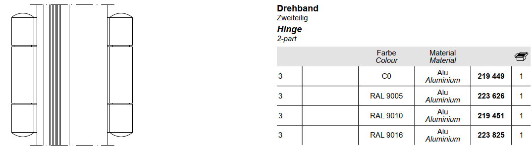 Schüco Drehband Zweiteilig, ASS 50 FD.NI, RAL 9005, Artikelnummer, 223 626, 223626, Aluminium