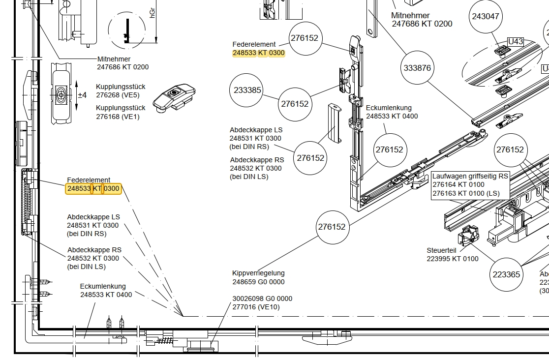 Schüco Federelement, 248533 KT 0300, für PASK 150 kg