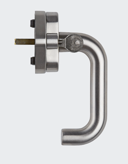 Schüco Fenstergriff, abschließbar, 234530, Edelstahl, DIN links und rechts verwendbar