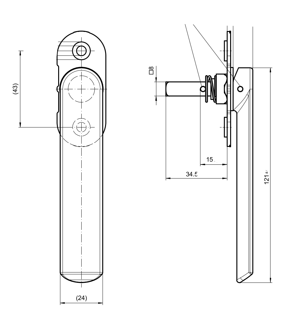 Schüco Handhebel, Naturton / Silberfarbig, DIN links und rechts verwendbar, 240885, für Faltanlagen, Royal S 70F, ASS FD
