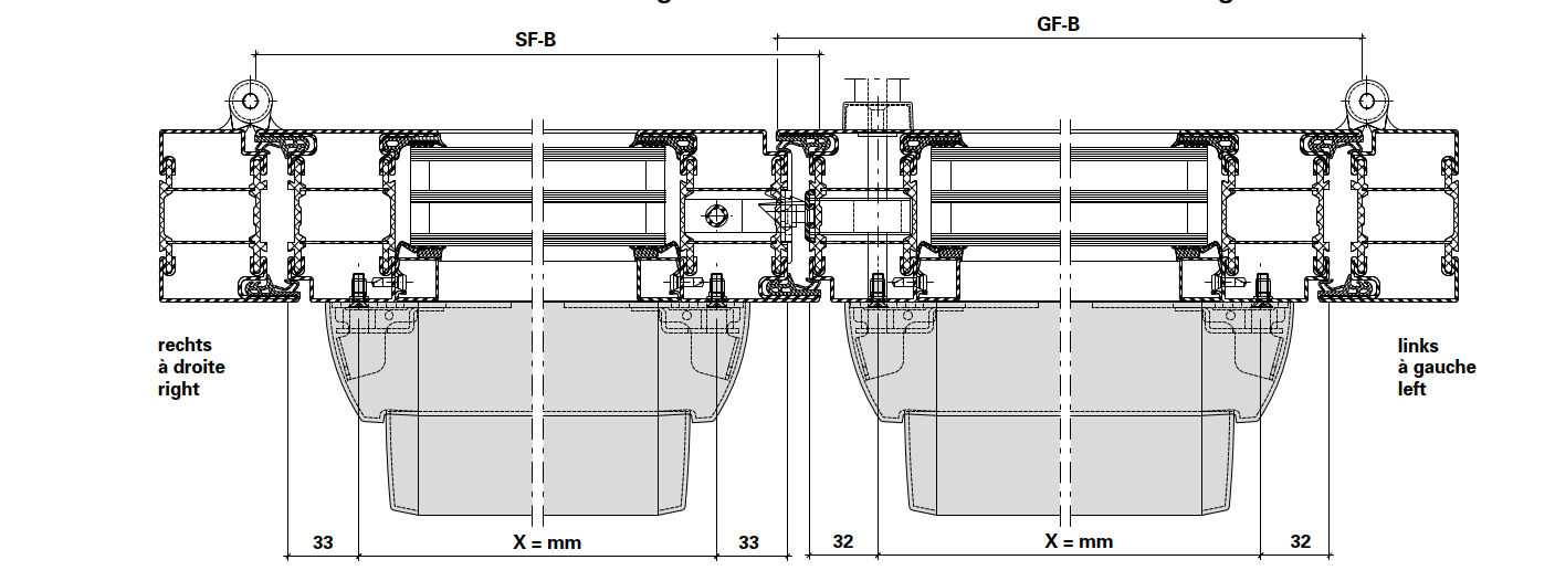 Schüco Jansen Aluminium-Panik-Druckstange F1 eloxiert, FFB 1221, Artikelnummer 555.697, Janisol HI Türen