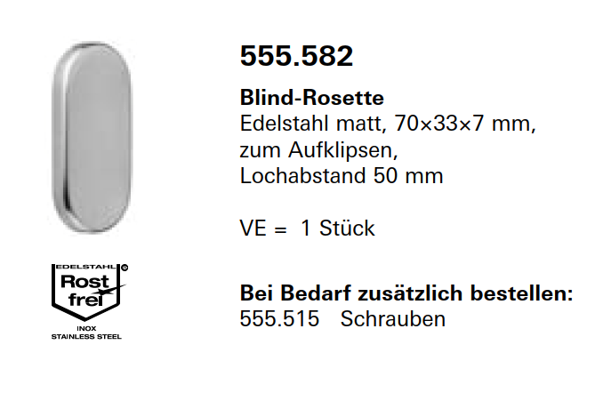 Schüco Jansen Blind-Rosette Edelstahl matt, zum Aufklipsen, Artikelnummer 555.582, Janisol HI Türen