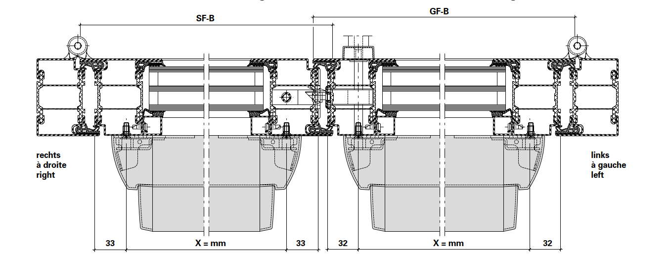 Schüco Jansen Edelstahl-Panik-Druckstange matt geschliffen, FFB 725, Artikelnummer 555.698, Janisol HI Türen
