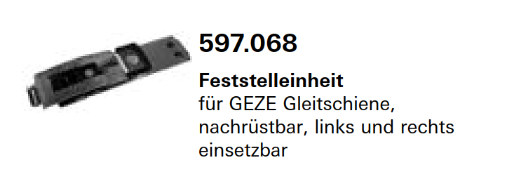 Schüco Jansen Feststelleinheit für GEZE Gleitschiene, nachrüstbar, Artikelnummer 597.068, Janisol HI Türen