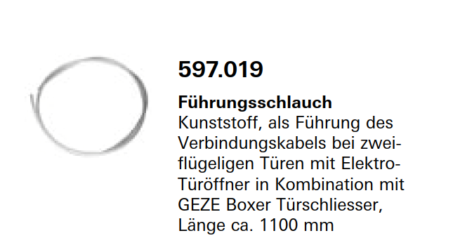 Schüco Jansen Führungsschlauch Kunststoff, als Führung des Verbindungskabels, Artikelnummer 597.019, Janisol HI Türen