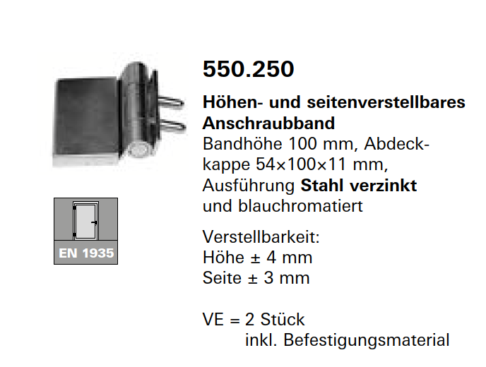 Schüco Jansen Höhen- und seitenverstellbares Anschraubband, Bandhöhe 100 mm, Artikelnummer 550.250