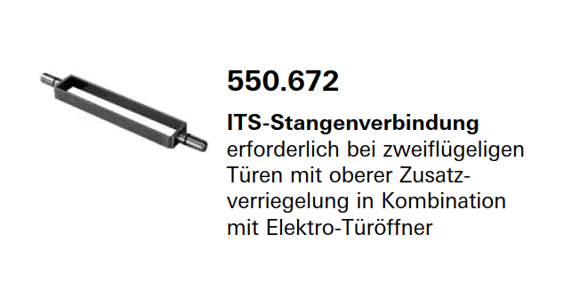 Schüco Jansen ITS-Stangenverbindung erforderlich bei zweiflügeligen Türen, Artikelnummer 550.672, Janisol HI Türen