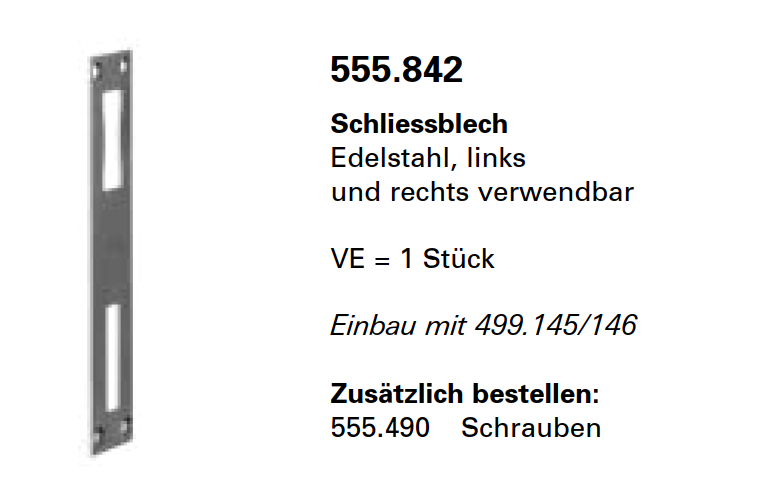 Schüco Jansen Janisol 2 EI30, Schliessblech Edelstahl, links und rechts verwendbar, Artikelnummer 555.842