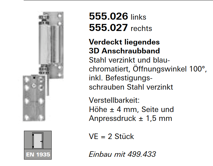 Schüco Jansen Verdeckt liegendes 3D Anschraubband Stahl verzinkt, rechts, Artikelnummer 555.027, Janisol HI Türen