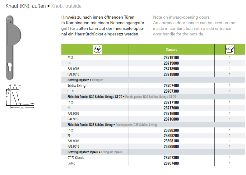Schüco Knauf (KN), außen, 28718900, Farbe RAL 9005, Nebeneingangstürgriffe