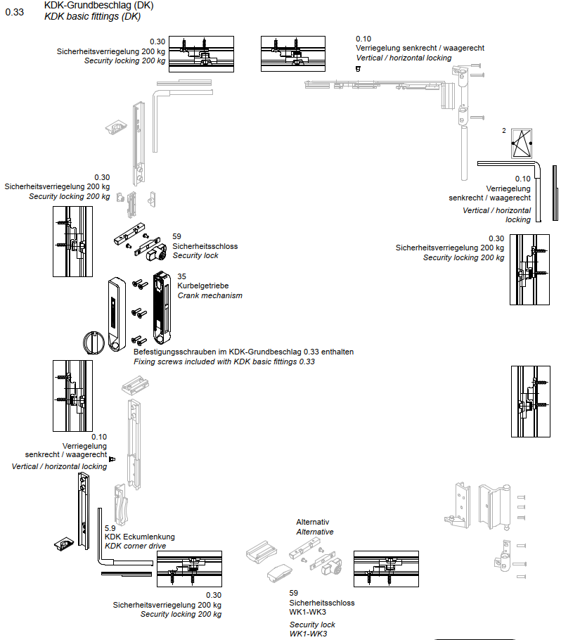 Schüco, Kurbelgetriebe, KDK-Grundbeschlag (DK) 200 kg, DIN links verwendbar, 214 307,LS