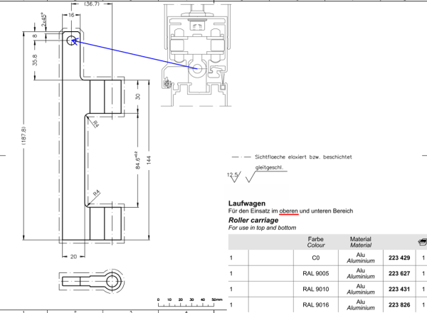 Schüco Laufwagenband-Set RAL 9005, ASS 50 FD.NI, Artikelnummer, 223627, für oben und unten