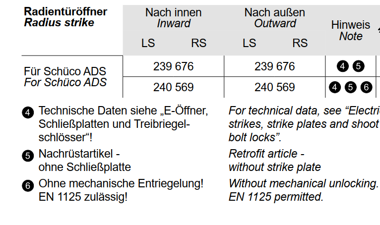 Schüco Radientüröffner für AP-Schwenkhaken-Bolzenschlösser, ADS Antipanik Mehrfachverriegelungen, 240 569, nach innen-außen LS/RS