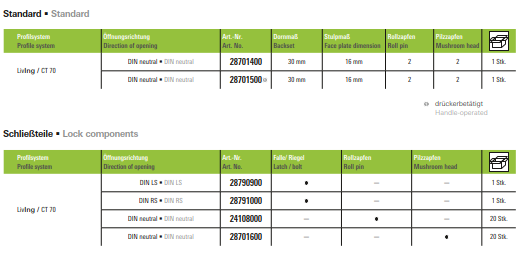 Schüco Roll- und Pilzzapfenschloss, 28701400