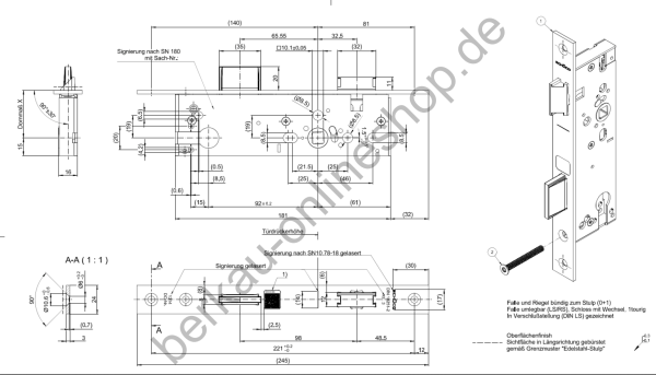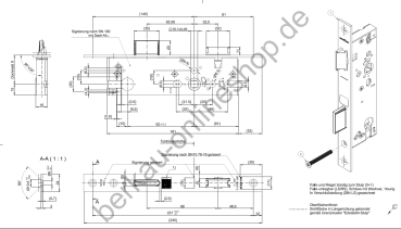 Schüco Schließplatte 279505 für Riegel-Fallenschloss, 279494, Dornmaß 30 mm, ADS HD